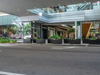 A view of a modern office building in the bustling urban business district of Miami, Florida, USA.