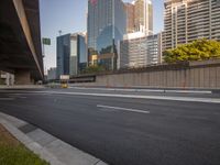 A stunning cityscape at dawn with modern architecture, skyscrapers, and a clear sky