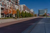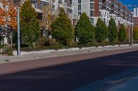 A view of a high-rise building in the urban cityscape of Toronto, Ontario, Canada, with clear sky and lush vegetation