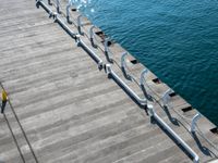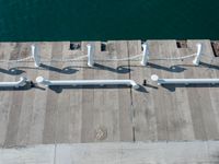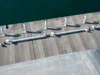 A top-down view of the coastal profile of Kaohsiung, Taiwan, with a jetty, harbor, and wood pier leading to the urban design of the city by the Formosa coast of the Republic of China.