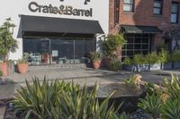 A view of the urban landscape in a residential area of the city, featuring a mix of concrete, asphalt, windows, trees, shrubs, and houseplants, on a sunny day.