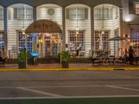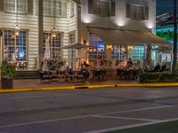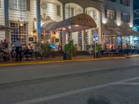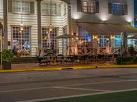 The classic architecture of Miami Beach, Florida, USA, illuminated by artificial light and framed by the asphalt road and street light create a beautiful urban profile at night, perfect for a stroll to eat out and shop.