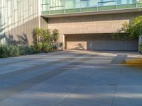 A modern concrete road with a hard shadow stretches straight down in Los Angeles, USA, illuminated by artificial light at night, creating an urban atmosphere.