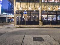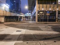 A Toyota Comfort sedan is parked on a street in Hong Kong's Wan Chai district, illuminated by artificial light in the heart of China's urban metropolis and modern architecture. The bustling cityscape features curved roads, glass facades, restaurant bars, and a train station.
