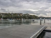 A gloomy grey sky hangs over the city as the first rays of sunlight break through, illuminating the urban landscape at dawn.