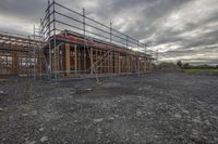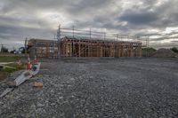 A gloomy and grey sky hangs over an urban landscape at dawn, with buildings, roads, and open spaces.