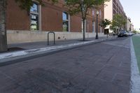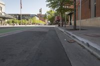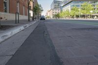 A view of the city of Denver, Colorado, showcasing its urban architecture and infrastructure. The photo captures a residential area with low-rise buildings, tree-lined streets, and a spacious public space with a parking lot. The classic architecture and well-designed urban layout create an inviting atmosphere in this downtown neighborhood.
