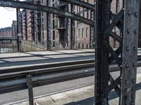 A view of Hamburg, Germany with its classic architecture, urban design, and urban life. The tints and shades of the Speicherstadt, with its brick walls and parallel streets, are contrasted with the coastal waterfront, featuring a harbour, canal and jetty. The urban landscape also features a railway, pier, bridge, warehouse, stair, tree, and handrail, among many other fixtures.