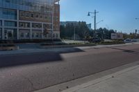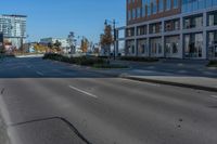 A view of a residential area in Toronto, Ontario, Canada, with a straight road lined with buildings and trees. The asphalt road surface and the vegetation create a beautiful contrast. The clear sky and sunlight add a warm touch to the cityscape.