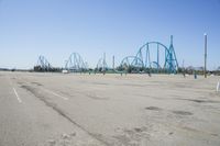 A view of the metropolitan area in Toronto, Ontario, Canada, showcasing the architecture, road, and parking infrastructure. The city offers a blend of residential neighborhoods, open spaces, and recreational parks, providing leisure opportunities for its residents and tourists. The clear sky adds to the beauty of the landscape, while the tied-arch bridge and cable-stayed bridge enhance the city's infrastructure. Explore the city's tourist attractions, including amusement parks and roller coasters, and enjoy the serene river flowing through the city.