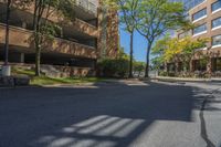 A view of the urban landscape in Toronto, Ontario, Canada. The photo captures a mix of vegetation, buildings, roads, and open spaces, with clear skies and sunlight shining on the city. The image showcases the architectural design, residential areas, and public spaces in this bustling city.