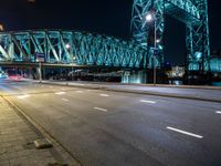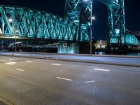 The night view of the pier and harbor of Amsterdam, Netherlands, illuminated by the street lights and artificial light. Motion blur and the classic architecture of the urban design creates a unique atmosphere in the city.