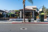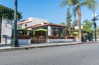 A low profile residential area in Arecales is seen in this city view, with its asphalt road, composite material curb, street light, public space, and vegetation. Urban design and infrastructure come together to create a peaceful day in the neighborhood.