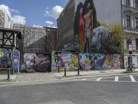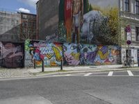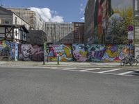 A peaceful residential neighborhood in Berlin, Germany, featuring classic architecture, urban design, street infrastructure, colorful graffiti, and a clear azure sky.