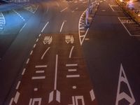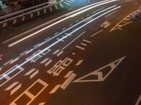 A top down view of the city of Tokyo, Japan, illuminated by artificial light, with motion blur and light streaks from the elevated road and street lights.