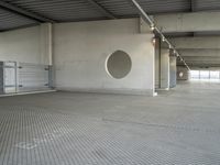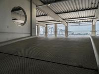 A composite view of a modern metropolitan area in Germany, featuring a variety of architecture, infrastructure, and public spaces, including a parking deck, parking garage, parking lot, and open space, all illuminated by natural day light.