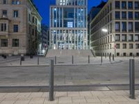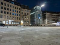 The modern and classic architecture of Hamburg, Germany creates an urban landscape of diverse lines, walls, facades, and buildings, illuminated by artificial light from the night sky. The bustling metropolitan area is full of public spaces, open areas, and transport options that make up the diverse neighborhood of this German town.