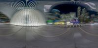 The city of New York is illuminated by a unique blend of artificial and natural light in this nighttime shot, with symmetry between the concrete, glass, and wood elements of the architecture and the straight road that seems to run endlessly down the middle.