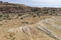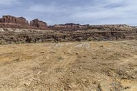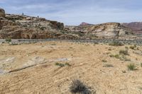 A stunning view of the rugged and beautiful red rock landscape in Utah, USA. The open space, dirt roads, and towering mountains create a breathtaking natural scene.