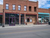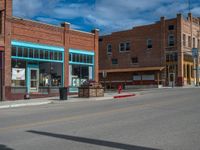 In the charming town of Utah, the classic architecture of storefronts creates a picturesque scene. As the day unfolds, the sunlight casts hard shadows on the asphalt road, adding depth and character to the urban landscape. The town offers a variety of shops and stores, inviting visitors to explore and indulge in some retail therapy. With its rural surroundings and beautiful cloud-filled skies, this town in Utah is the perfect destination for a relaxing and unique shopping experience.