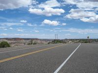 In the vast open spaces of Utah, a straight road stretches into the horizon, cutting through the breathtaking landscape. The asphalt surface creates a smooth and inviting path for travelers to explore the beauty of nature. With the clear blue sky above and fluffy clouds drifting by, the road offers a serene and peaceful journey. The profile of the road reveals a gentle incline, adding a sense of adventure to the experience. It's a one-of-a-kind road trip that captures the essence of Utah's majestic scenery.