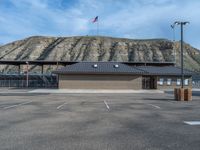 In the rural landscape of Utah, a parking lot sits under the open sky, casting hard shadows on the asphalt surface. The profile of the mountains looms in the distance, creating a stunning backdrop to the scene. This serene and spacious open space is a perfect spot to enjoy the beauty of nature. With one quarter of the day left, the clouds playfully dance across the sky, adding depth and dimension to the landscape.