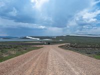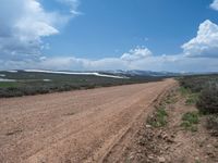 In the vast landscape of rural Utah, a dirt road stretches as far as the eye can see. The road surface transitions from dirt to gravel, providing an adventurous off-road experience. Surrounding the road are open spaces and stunning natural scenery, including a lake and sandy areas. The straight road leads to a 1/4角 track, offering a thrilling ride for nature enthusiasts. With clear blue skies and fluffy clouds overhead, this road trip promises an unforgettable journey through the heart of Utah's captivating beauty.