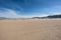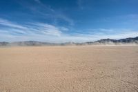 A vast, expansive desert dotted with sand and rocks, with a cloud-filled sky in the background, illuminated by the sun - this is the stunning open space of the USA.