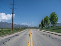 In the rural landscape of Utah, a straight road stretches into the distance, cutting through fields covered in a blanket of snow. Majestic mountains rise in the background, creating a stunning backdrop for this picturesque scene. The clear sky and fluffy clouds add to the serene and tranquil atmosphere. This road, one quarter of a circle, leads through an agricultural area, showcasing the natural beauty of the USA's western state of Utah.