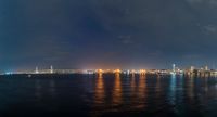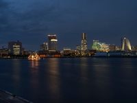 Nestled in Yokohama, Japan, the coastal cityscape comes alive with modern and futuristic architecture illuminated by artificial light. From dawn to night, the skyline along the ocean and river showcases a blend of clear and grey skies, offering a dramatic backdrop for the futuristic structures. The harbor area provides open spaces for residents and visitors to enjoy the urban setting, with the water adding a calming touch to the bustling city life.