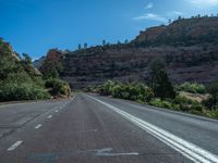 In the heart of Utah, USA, lies the breathtaking Zion National Park. A winding road stretches through the picturesque landscape, framed by majestic mountains and under a clear blue sky. The asphalt road leads visitors on a journey through nature's wonders, with the sun shining brightly overhead. The stunning scenery offers a quarter mile of pure bliss, with clear skies and fluffy clouds adding to the beauty. Explore the splendor of Zion National Park and experience the magic of this natural treasure.